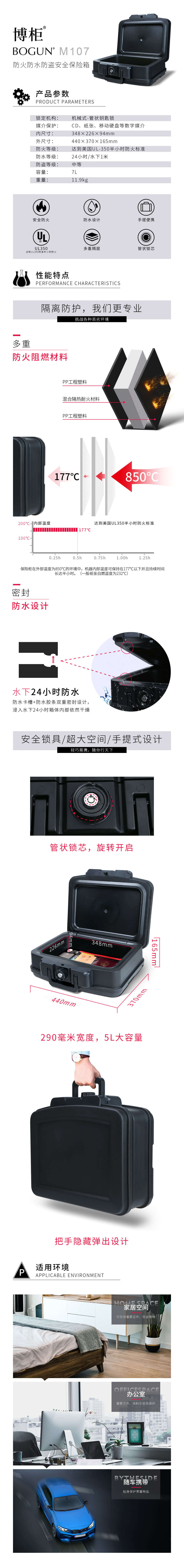 博柜(BOGUN)M107防火防水安全箱小型手提式箱外843度箱内177度半小时隔热,水下24小时防水 自营