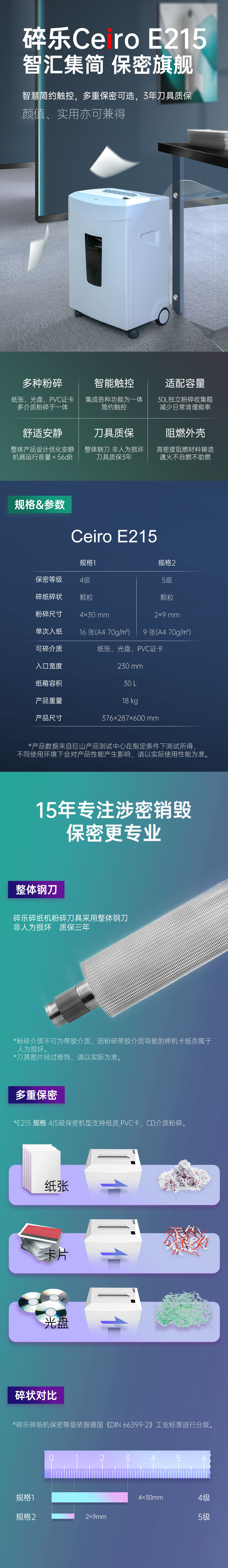 碎乐(Ceiro)E215碎纸机实用办公家用德国5级保密,可碎纸、PVC卡、光盘 自营