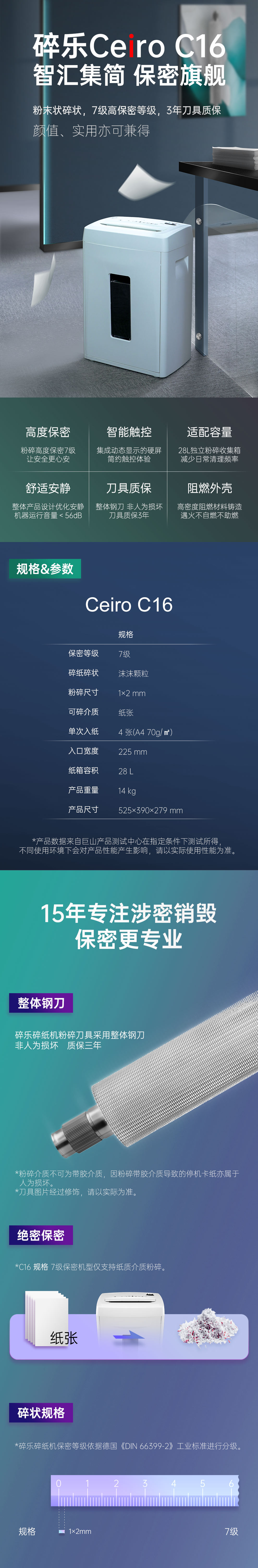 碎乐(Ceiro)C16高保密碎纸机德国[DIN 66399]7级1*2mm尺寸保密,可碎纸张 自营